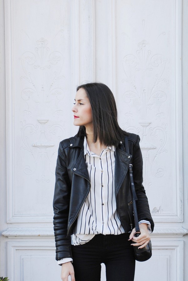 Los abrigos son de mis prendas favoritas y sé que aún vendrán muchos días de frío para seguir usándolos, pero cuando sale el sol y el día se vuelve totalmente primaveral pasan a un segundo plano,y las bikers, americanas y chaquetas cortas se convierten en las protagonistas. Me gusta mucho como sientan las bikers y el rollo que aportan al look, la combinación con camisas es de mis favoritas como la que os muestro en el look de hoy.