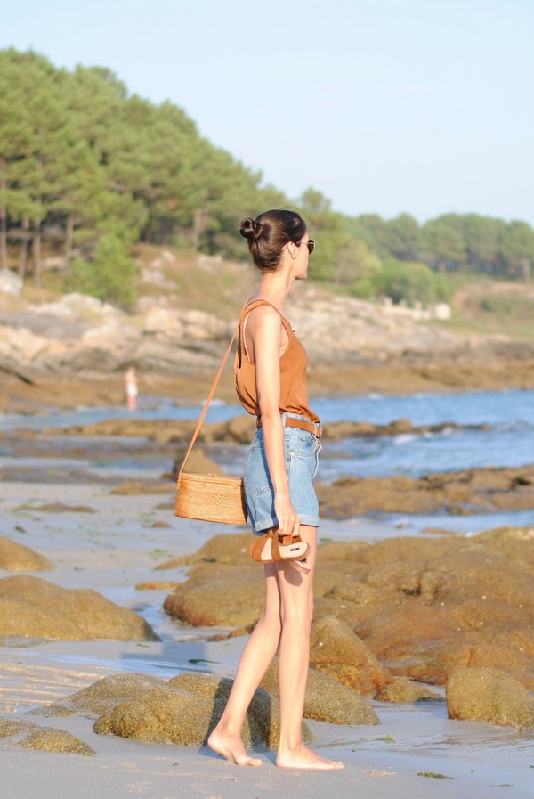 Se trata de un estilismo básico pero muy resultón, el típico look veraniego con el que salir a pasear y disfrutar de los últimos rayos de sol del día. Combino shorts mom fit con top en color marrón a juego con los accesorios. La estrella de hoy es el bolso balinés de MARTA REGISTRADA, más práctico y seguro quizás que el redondo, pero igual de precioso.