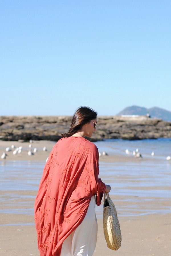 Los he combinado con top, kimono y alpargatas en color naranja en un estilismo muy simple pero muy resultón. El capazo aporta el toque final.