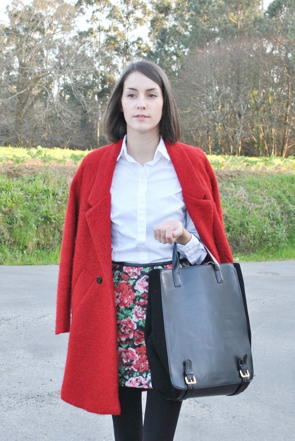 La falda es una preciosidad y ese tipo de estampados apetecen ya mucho. El abrigo ideal, estas muy guapa. Un besote grande.