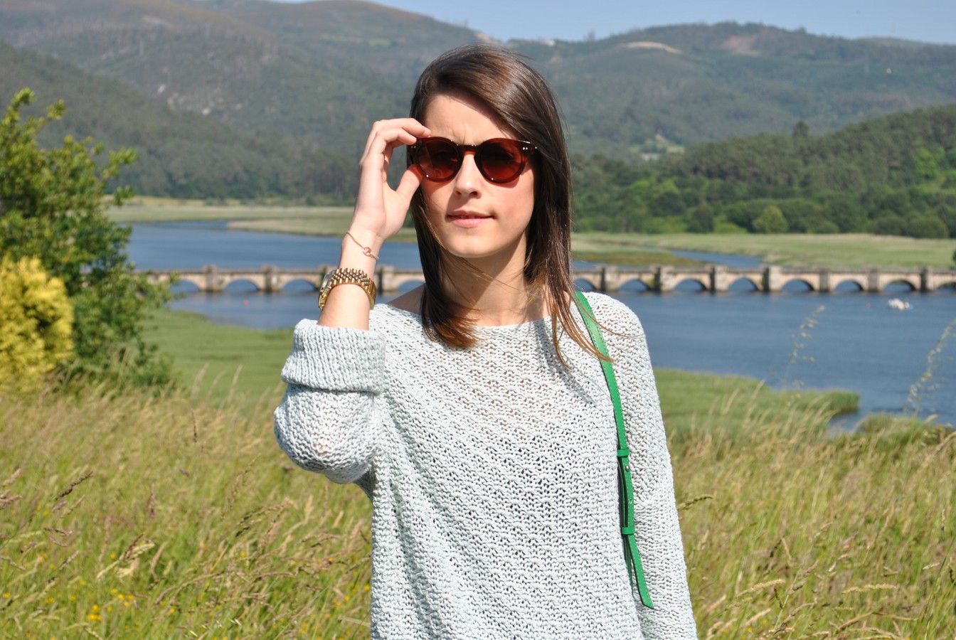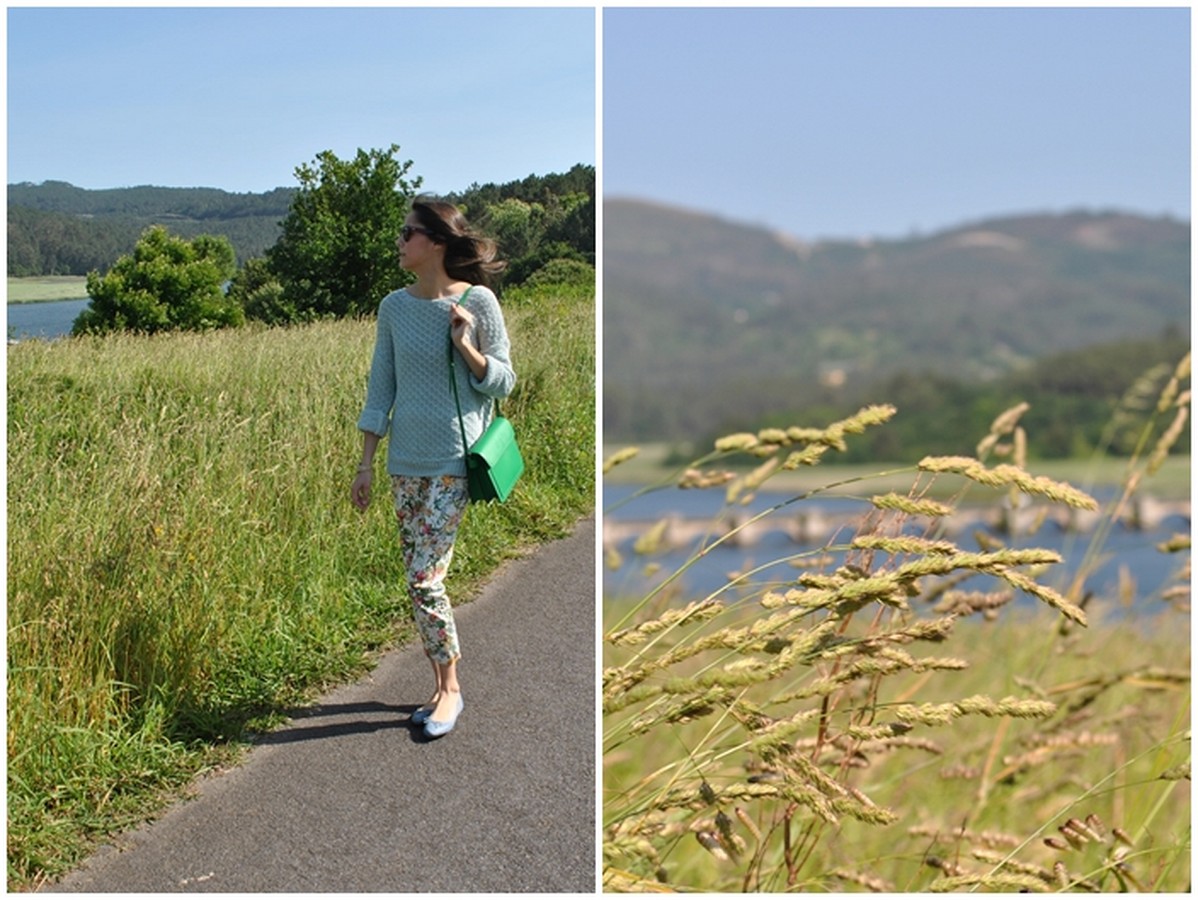 —This pant has many combianciones possible due to its color. I wanted to combine it with a light shade such as sky blue. To continue with the colorful green bag used. You like?