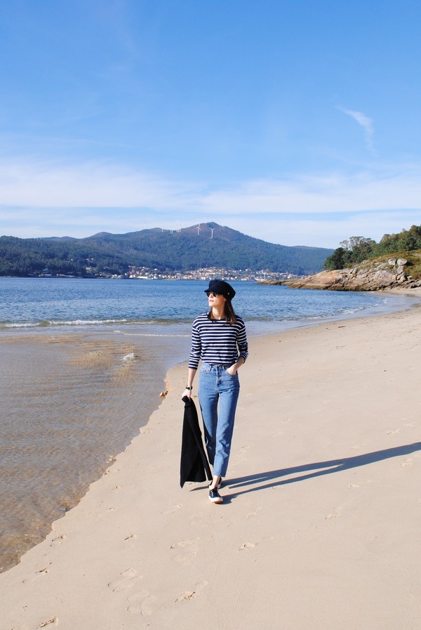Cuanto me gusta la tendencia navy, y que looks más chulis resultan de unir prendas de dicha tendencia. Hoy he decidido combinar camiseta con estampado a rayas en azul y blanco con unos jeans ‘mom fit’ y zapatillas deportivas a juego, la guinda del pastel la he puesto de la mano de ésta gorrita marinera que le da más fuerza al look y que acentúa más el toque naútico que me apetecía darle.