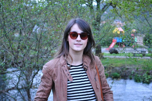 Nunca jamás he usado gafas si no son de óptica, nunca hasta que ví éstas y me enamoré de ellas, era justo lo que buscaba, tal cual las quería….me lo pensé y bastante pero al final me he decidido y a ver el resultado, porque aún tengo cierto recelo. Las gafas hacen, junto al cuero gastado y viejo de la cazadora y el bolso y con los vaqueros negros, un look un tanto vintage que me encanta, ¿y a vosotr@s?.
